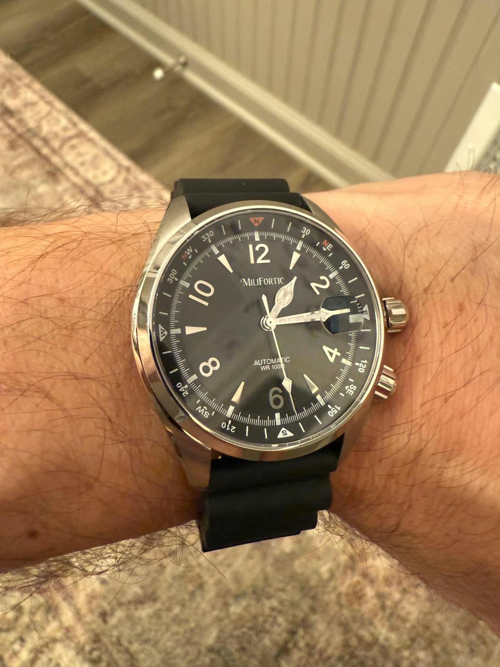 Milifortic S089 39.5mm Automatic Sports Rubber Starp Watches with Compass Bezel