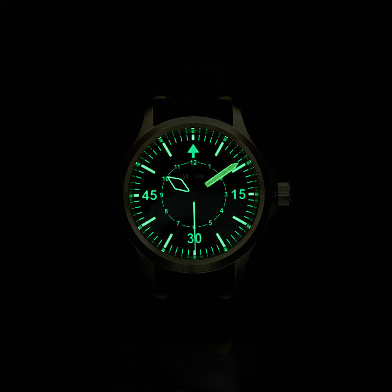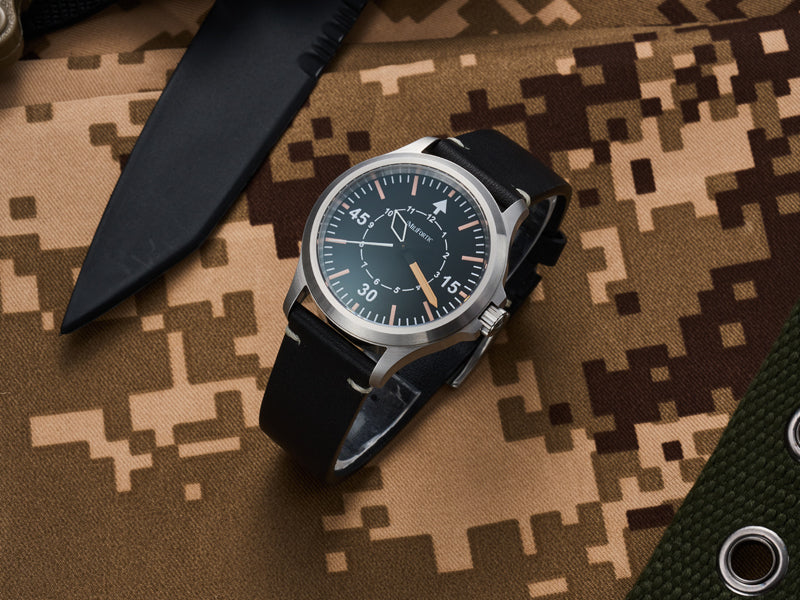 The M111 is a field-aviator style watch, built to handle daily wear with ease. Its 39mm case fits most wrists comfortably, while the finely brushed case pairs with a clear, functional dial design that adds a sporty edge.